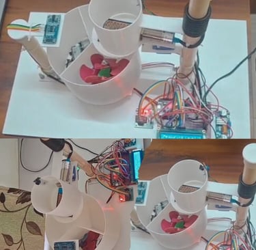 An ESP32-based smart system that automatically segregates dry, wet, and metal waste using intelligent sensors and motorized mechanisms. The compact 3D-printed design supports real-time bin level monitoring and alert notifications through the Blynk IoT platform.
