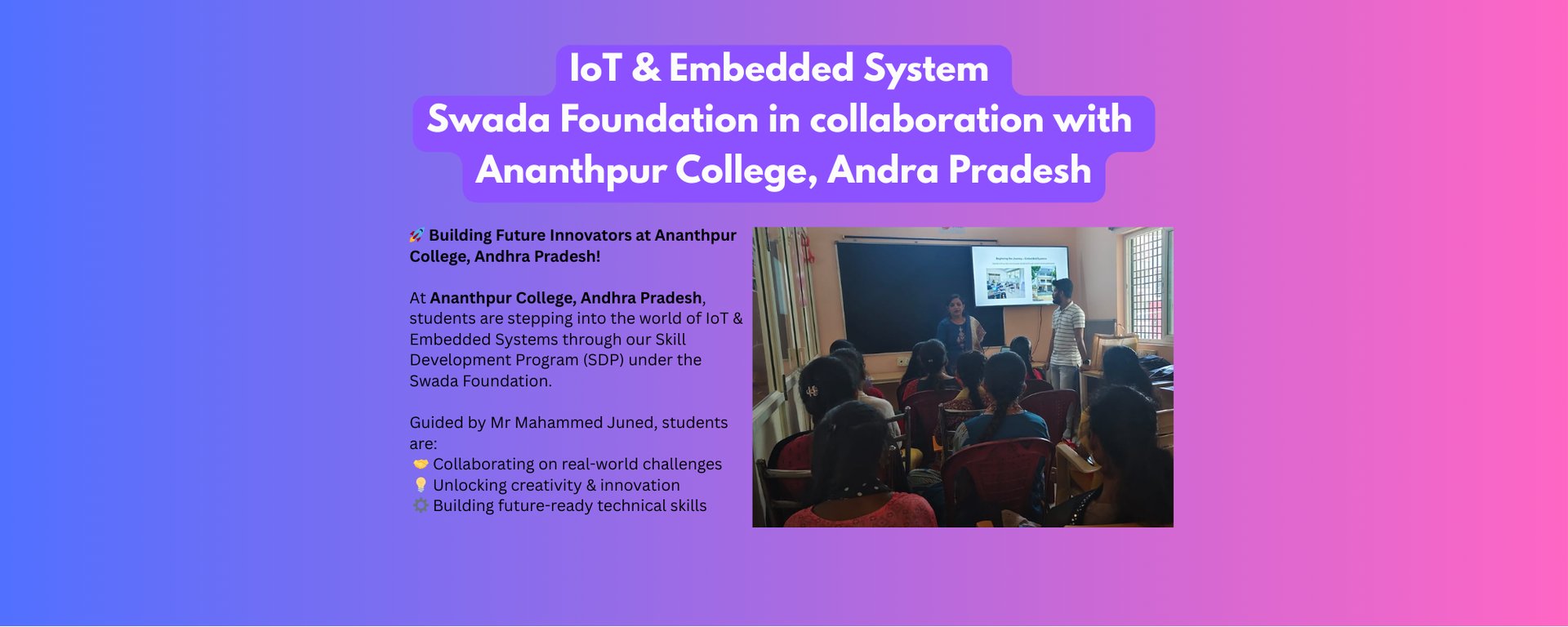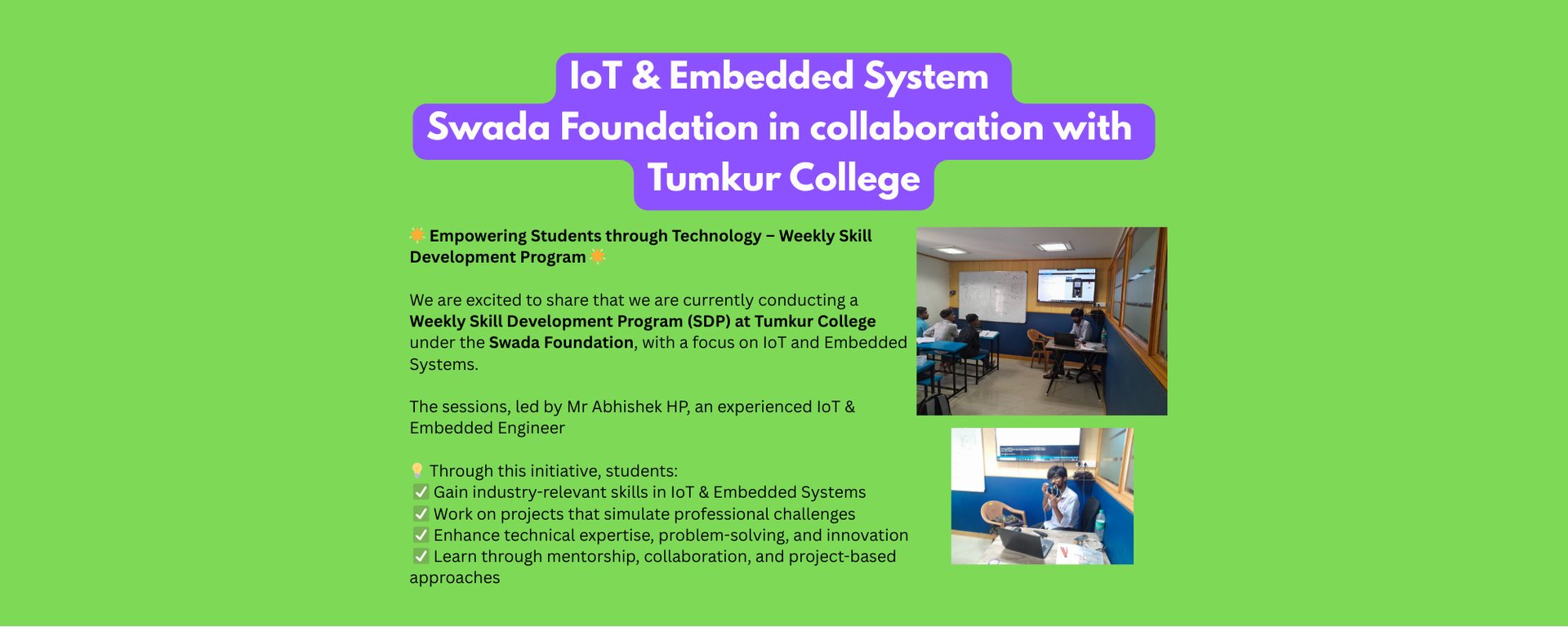 In partnership with the Swadha Foundation, we are committed to offering technical training that empowers students and professionals, contributing to community development.R&D Opportunities